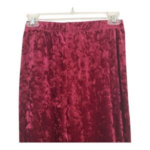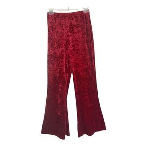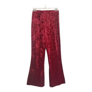 Red Wine Crushed Velvet Flared Pants High Waist Pull On Stretch M Bell Bottoms