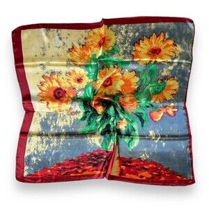 Red Wine Edges & Yellow Floral Scarf 35” X 35” Women Blue Scarve Headscarf Tie