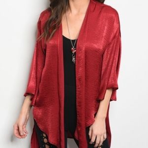 3/4 sleeve light weight satin style kimono cardigan in a Red Wine.I also have this in a mustard gold color in my closet!