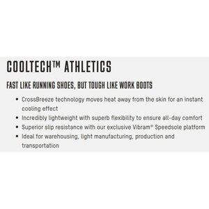 Stay fast, cool and comfortable on your feet with these lightweight, light-duty shoes featuring CrossBreeze technology for an instant cooling effect. The Nano composite toe cap protects without weight and bulk, while the Vibram® SpeedSole delivers best-in-class slip and abrasion resistance underneath, plus electrical hazard protection. Designed specifically to fit the unique shape of the female foot.