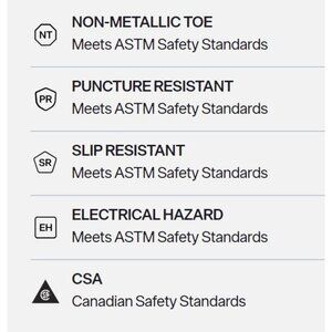 Non-Metallic Toe : Meets ASTM Safety Standards