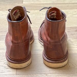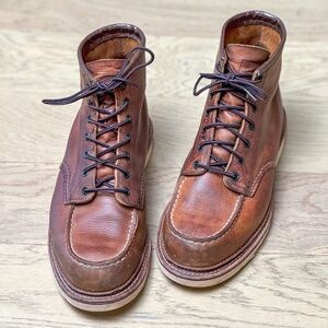 The Red Wing Classic Moc boot is a timeless, rugged icon known for its durability, comfort, and craftsmanship. Made from high-quality leather, it features a moc-toe design that enhances both style and functionality. The boot's signature traction tread sole provides excellent grip, making it perfect for both work and casual wear. With a cushioned insole and Goodyear welt construction, the Classic Moc ensures long-lasting support and easy resoleability, allowing it to stand the test of time. Whether you're tackling tough outdoor tasks or simply looking for a durable, stylish everyday boot, the Red Wing Classic Moc is built to last and only gets better with age.