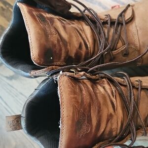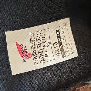 These Drynoforce Red Wing boots feature a rich brown leather upper with a classic lace-up design, and metal eyelets, ensuring a secure fit. Built for durability, they come with a sturdy rubber sole, padded collar for added comfort and steel toe for safety. Perfect for rugged environments, these boots offer both protection and style. Steel toe meets ASTM safety standards. This heavy-duty boot with steel toe protection significantly reduces underfoot pressure by distributing the pressure evenly across the feet, minimizing foot-pounding shock over long work hours on hard, flat surfaces. The built-in insole also offers excellent stability, while the premium, waterproof Red Wing leather upper helps keep you comfortable in wet conditions. Size 13 B (narrow foot) Gently used and still in excellent condition. Smoke free home.