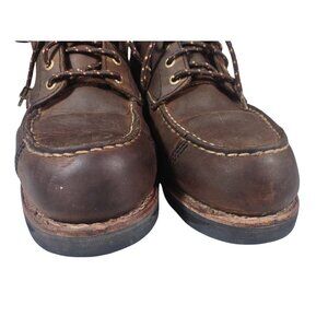 The Red Wing Irish Setter Wingshooter 849 Brown Leather Waterproof Boots in size 9D are a durable and stylish choice for workwear and outdoor activities. Made with high-quality leather and featuring a waterproof design, these lace-up boots are perfect for the winter, fall, and spring seasons. The ankle shaft style, round toe shape, and combat style make them both functional and fashionable, while the logo accents add a touch of brand identity. Whether you're hitting the hunting grounds or just running errands, these Red Wing boots are sure to keep you comfortable and dry.