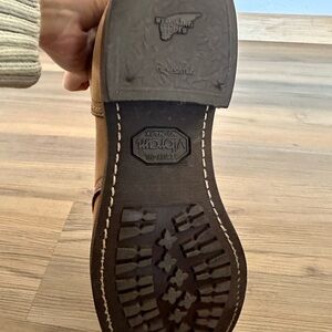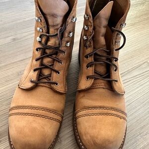 Red Wing Iron Rangers in size 9.5 Women’s, color Honey Chinook. These are in great condition. Some wear on the outer heels. I get lots of compliments on this color. Comes in original packaging with felt sleeves.