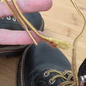 one shoelace is missing a tip