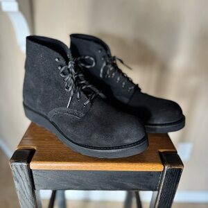 Red Wing and United by Arrows collaboration boots. These are in “as new” condition. Reposhing this item I purchased from @closet_et. Loved them, but ready to rotate for something new. I have not had these very long, worn once, but the “all black” was not to my liking!! Comes with a set of Pisgah Range custom 440 paracord strings and a set of factory black round laces.