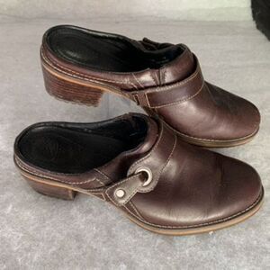 Red Wing Women’s Size 7B Brown Leather Clogs Mules. Have a few scuff. Right shoe has a little flaw on the inside. See photos.