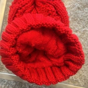 Red winter hat/toque in great condition, worn once Fuzzy fleece lining