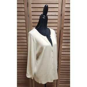 Red Woman Vintage Solid Gold V-Neck Plus Size 2X Long-Sleeve Button Up Cardigan