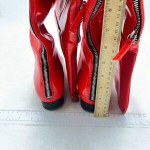 Red Women Over The Knee High Boots Pointed Toe Flat Back Zipper Ladies Shoes
