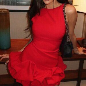 Red Women's Sexy Pleated Mini Dress