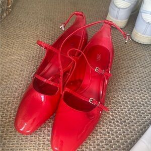 Stylish red women's shoes with a sleek design. Perfect for any occasion.