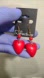 Red wooden heart shape earrings