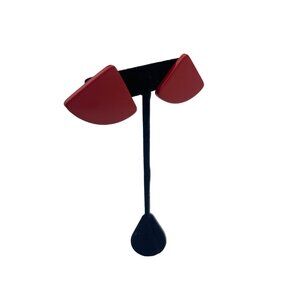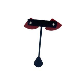 Red Wooden Pie Shaped Post Back Earrings 80s Retro