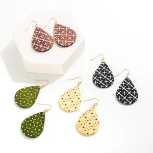 Red Wooden Teardrop Christmas Quilt Pattern Drop Dangle Earrings