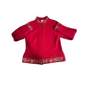 Red Wool Jacket Blazer Ethnic Bohemian Button Down Sequin Embroidery Sz…