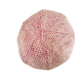 This vintage cranberry red white wool beret pillbox hat from the 1950s featuring a red bow is a unique and stylish accessory. Made in the United States and is union made, this one-size hat is crafted from a wool blend material, giving it a classic and timeless look.