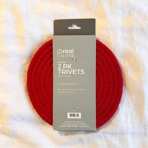 Enhance your kitchen with the Red Woven Trivets. Perfect for protecting surfaces, these trivets add a pop of color to your home.