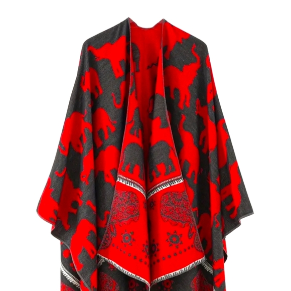 Fabulous red and black wrap. Wrap features elephant's trunks up.