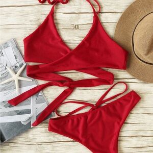 Red Wrap Bikini Set