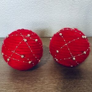 Set of 2 new condition red yarn and silver bead accent decorated Christmas ornaments. Lightweight and soft.
