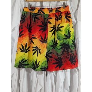 Red, Yellow, Green Ombre Size Small w/Marijuana Leaf Rasta Elastic Waist Shorts