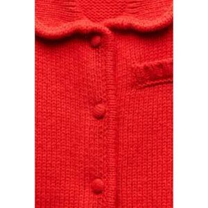 Red Zara Collared Button Front Short Sleeve Knit Cardigan Sweater (NWT)