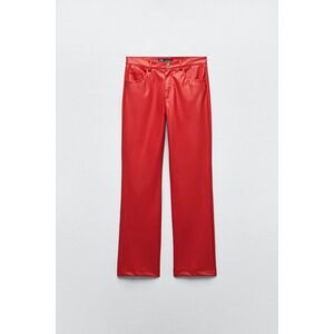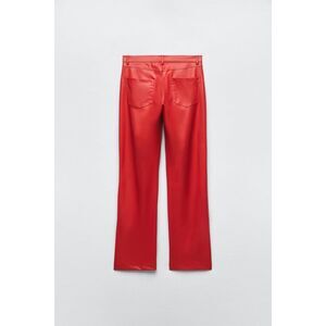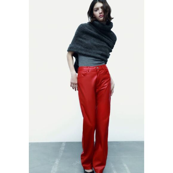 Red Zara Faux Leather High-Waisted Straight Leg Pants
