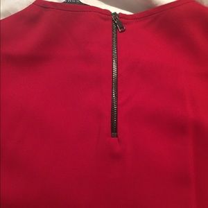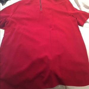Red, Zara, short sleeve shirt with black zipper on the back and slightly cut hi-lo with crew neck neckline. Lightly worn and in great condition!!