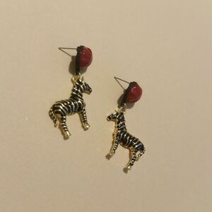 Elegant drop earrings featuring a striking zebra design in gold and a bold red accent. Perfect for adding a touch of sophistication to any outfit.