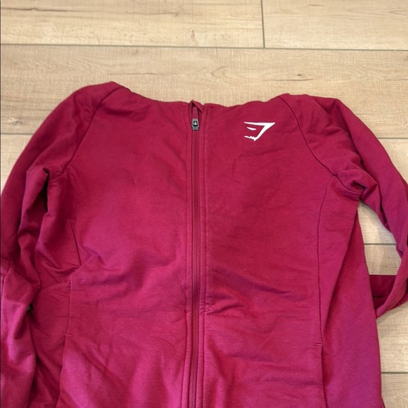 Stylish red zip-up jacket with a sleek design. Perfect for casual wear.