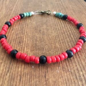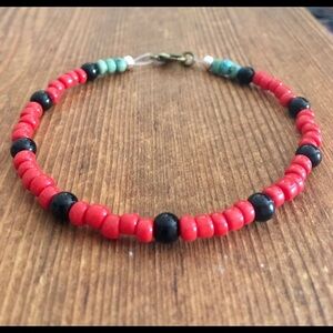 1. 🔴 Handmade bracelet with vivid red and black beads + turquoise accent.