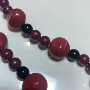 Elegant necklace with red and black beads. Perfect for any occasion.