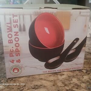 Red and Black Bowl & Spoon Set.Ramen Bowl Set. New In box