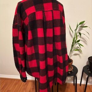 Stay stylish and warm with this red and black checkered shacket. Lightweight and soft. Perfect for casual outings.