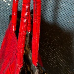 Stylish red croc-embossed tote bag perfect for any occasion. Add a pop of color to your outfit with this chic accessory. This tote has 1 zipper pocket and 2 slip pockets and double black handles. It is patent leather and croc embossed. NWOT no call-outs.