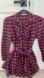 This casual dress features a striking red and black color scheme with a notched collar and cuffed long sleeves. The pleated, fit-and-flare silhouette is enhanced by a tie front, offering a flattering and versatile look for any casual occasion.