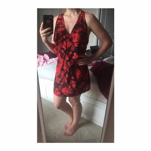 Silky red and black dress with a fun front flowy panel. By Silence and Noise for Urban Outfitters.