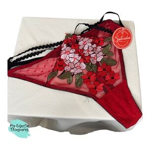 Red and Black Floral Embroidered Thong Panties from Splendies Size 1X