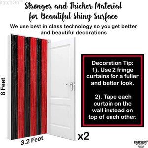🧿XTRALARGE 6.4X8 FEET | SHINY TWO DIFFERENT COLOR OF FOIL CURTAIN : Thinking about what to add on your party backdrops? With this black and Red Fringe Curtain Backdrop, you can make casino party decorations for home or an elegant entrance. Let them be amazed with your great DIYs with foil fringe curtain. With a touch of your creativity, you can make an elegant Red black tinsel backdrop or red and black party supplies at the center of your venue. Create your own DIYs now!