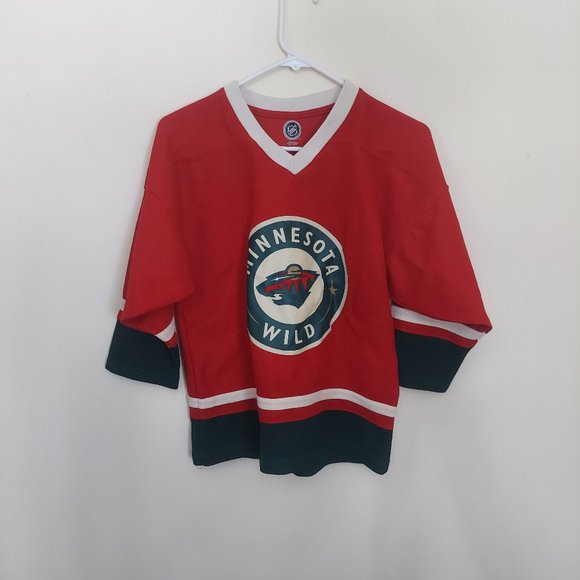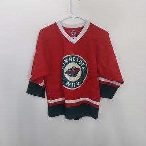 Red and Black Kids Large 12/14 Minnesota Wild NHL Numberless Jersey