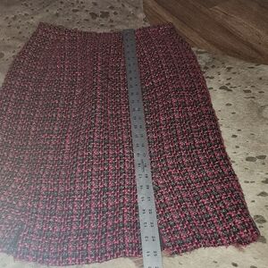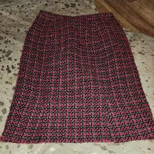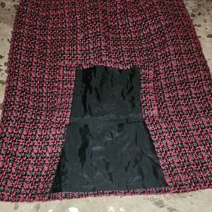 This knee-length pencil skirt in striking red and black is perfect for both work and cocktail occasions. Its tailored silhouette offers a sleek and professional look, while the sturdy fabric ensures comfort and durability. The classic design makes it a versatile addition to any wardrobe.