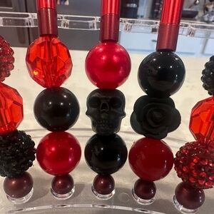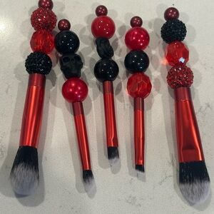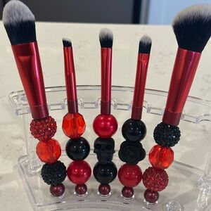 Enhance your makeup routine with this stylish red and black brush set. Perfect for applying foundation, blush, and more. A must-have for any makeup enthusiast.