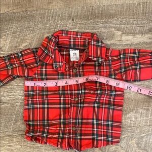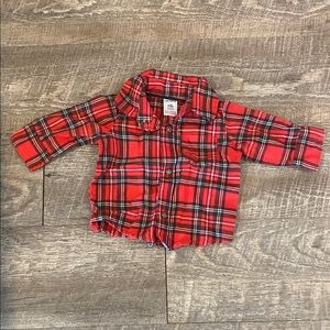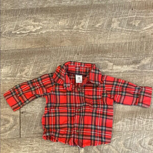 This classic button-down shirt features a bold red and black plaid pattern, crafted from soft flannel for a cozy feel. Perfect for casual or rustic occasions, it offers a timeless style with its traditional design.