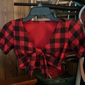 Red and Black Plaid Crop Top