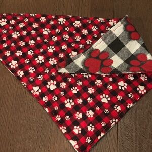 Stylish dog bandana with red paw prints. Perfect for pets. Easy to wear.