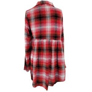 Red and Black Plaid Long Flowy Button Up Flannel Shirt Size Small