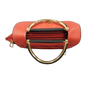Red and Black Two-Tone Cross Body Purse With Golden Accents, Adjustable Strap