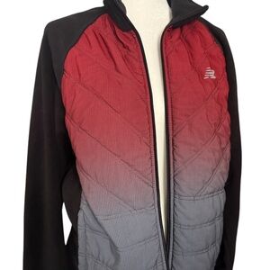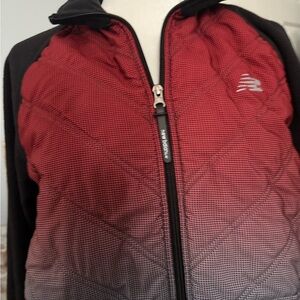 NB red and black zip-up jacket. Features a gradient design.